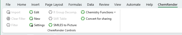 To install ChemRender start by opening Excel. ChemRender support Excel 2016 or later on Mac, Excel 2016 or later on Windows and Excel on the Web.
