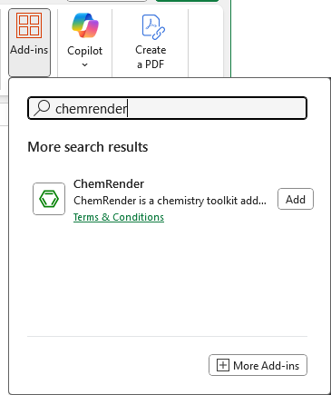 Click the button. This will open a dialog box where you can search for the ChemRender Add-in.